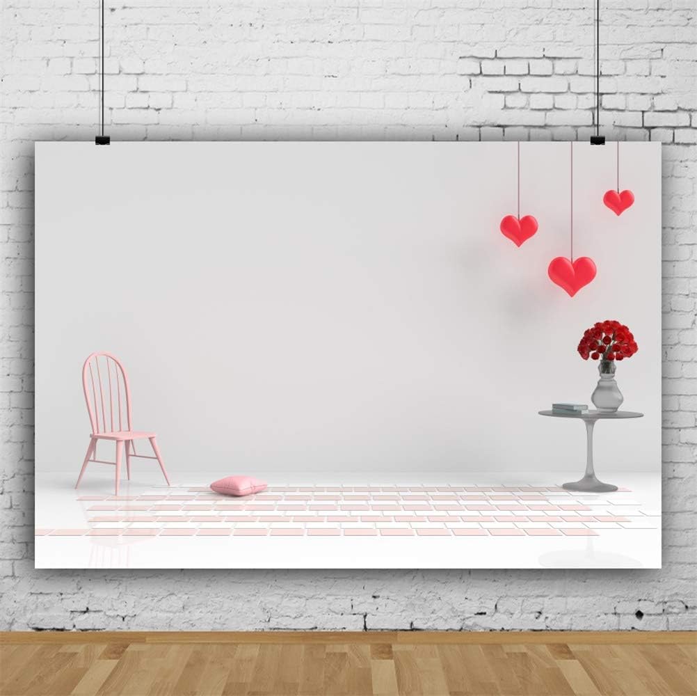Laeacco 7x5ft Simple Vinyl Valentines Day Photograhy Background Pink Chair Cushion Hanging Red Hearts Roses Table Tile Floor Backdrops Girls Lovers Couple Portraits Shoot Wedding Photo Studio Photo Backgrounds Nordicid Com